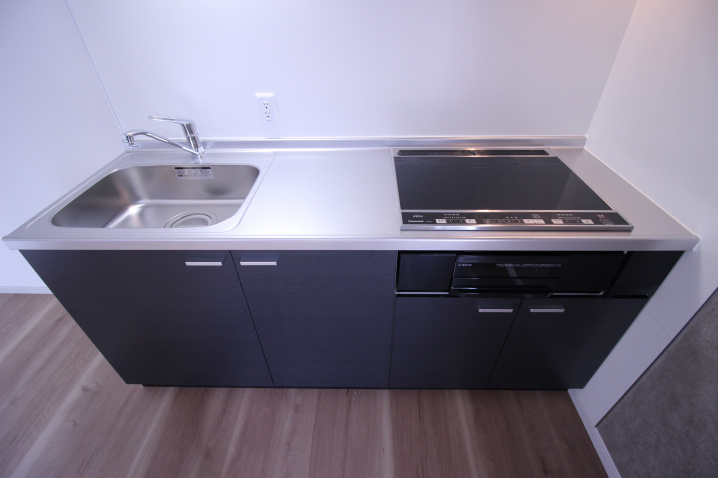 キッチンはシックな色でお洒落です★