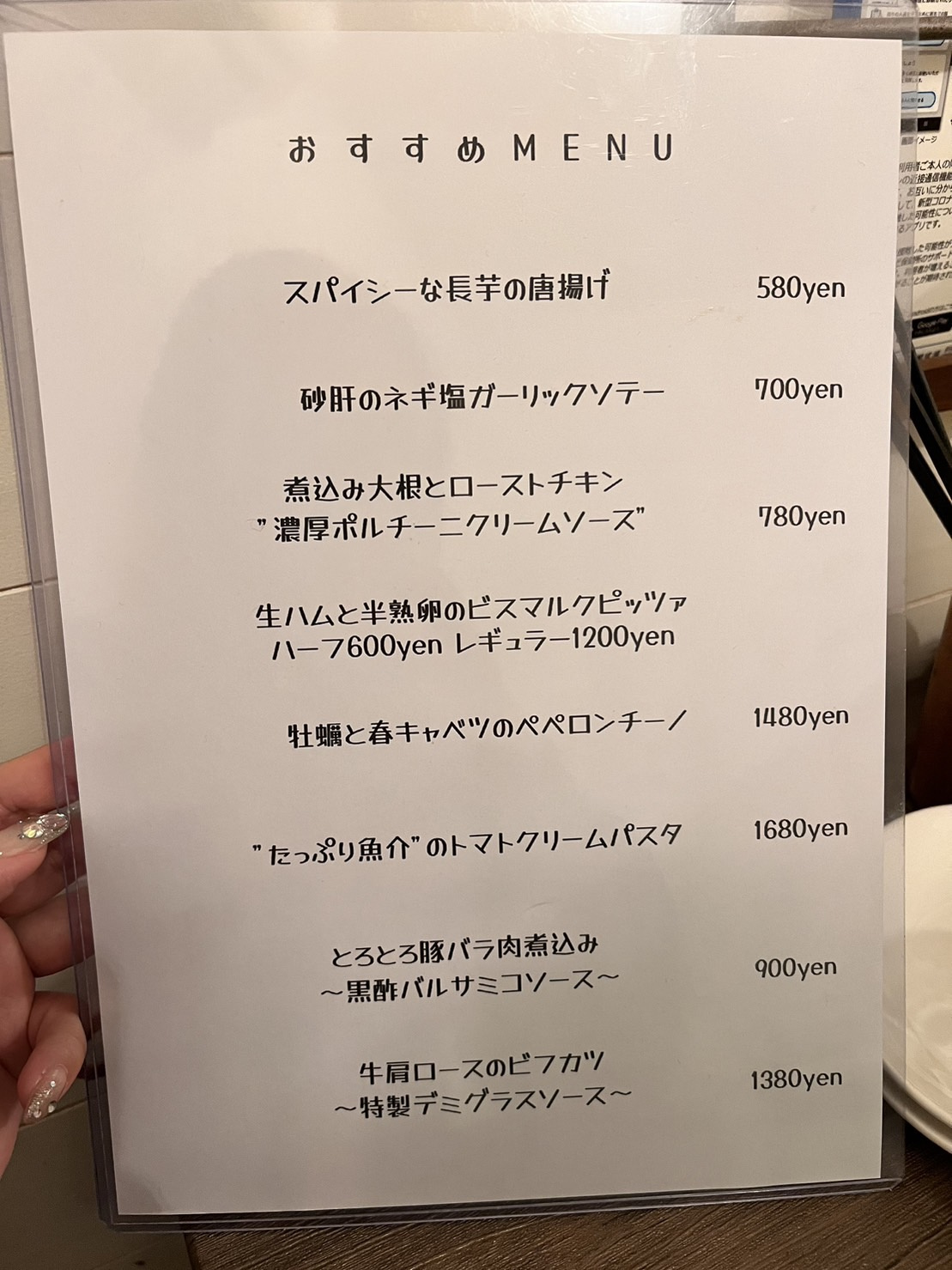この日は店員さんオススメのコースメニューを注文しました♡