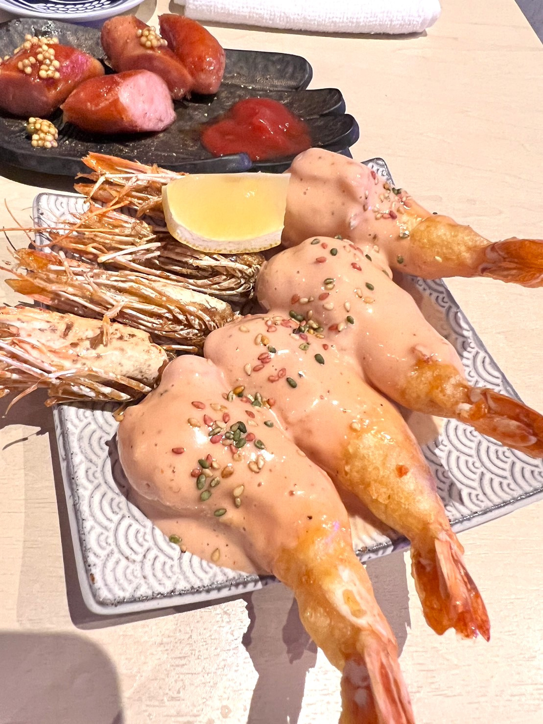 特製海老マヨ・チョリソー・ブギウギ海鮮カルパッチョを注文♪