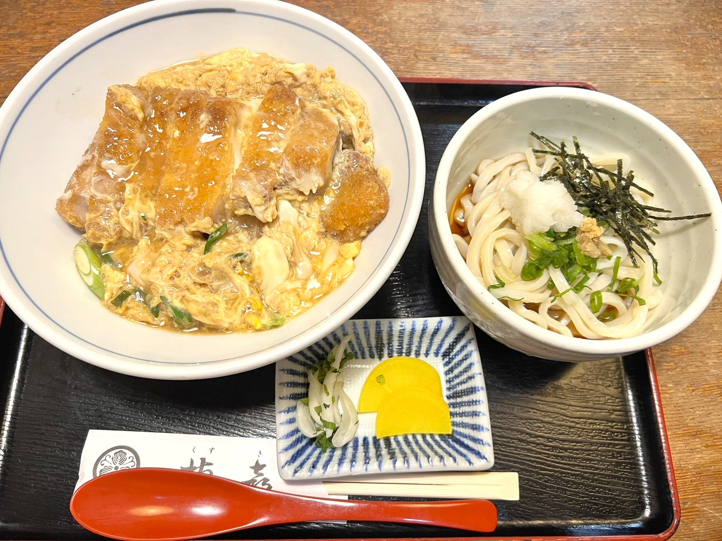 メニューが豊富で散々迷った挙句、かつ丼のミニうどん冷を注文!