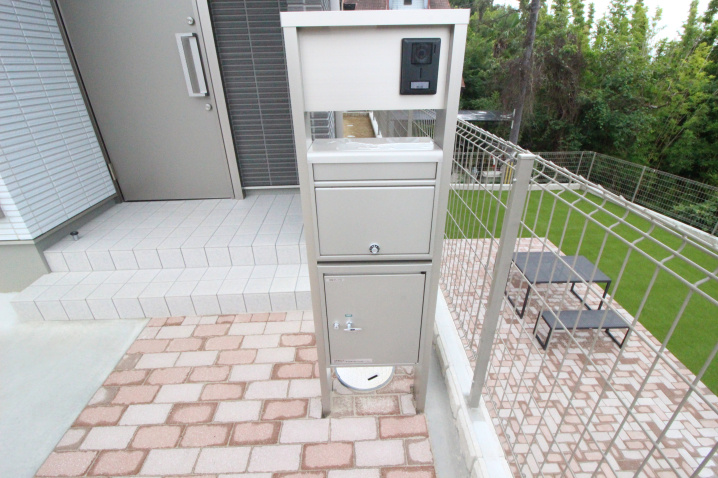 玄関前にはポストと宅配ボックスもあり